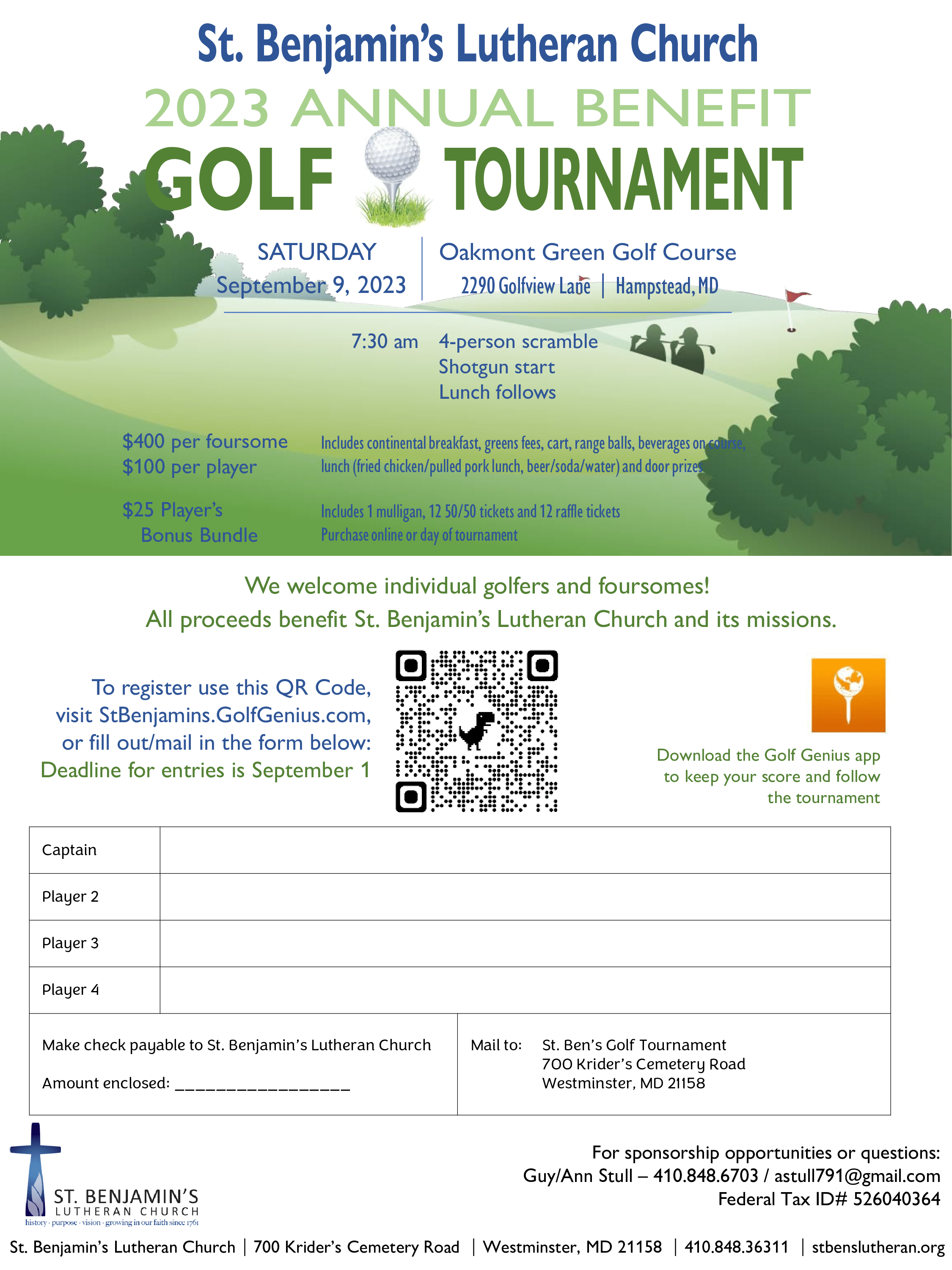 Welcome to the St. Benjamin's Golf Tournament 2023